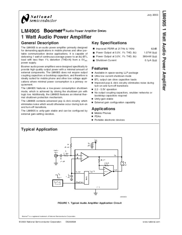 Datasheet LM4905: