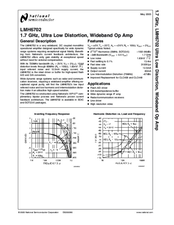 Просмотр технического описания на LMH6702