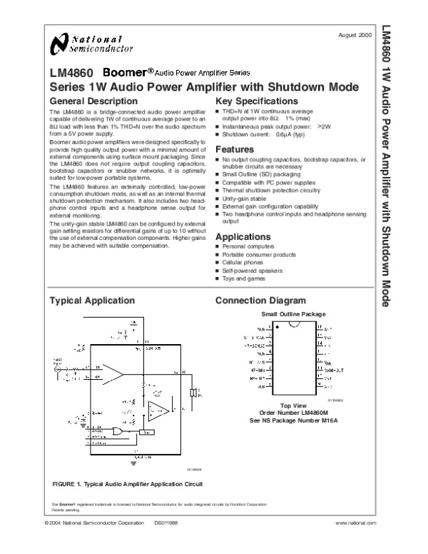 Datasheet LM4860: