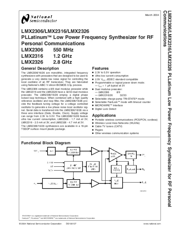 Datasheet LMX2316: