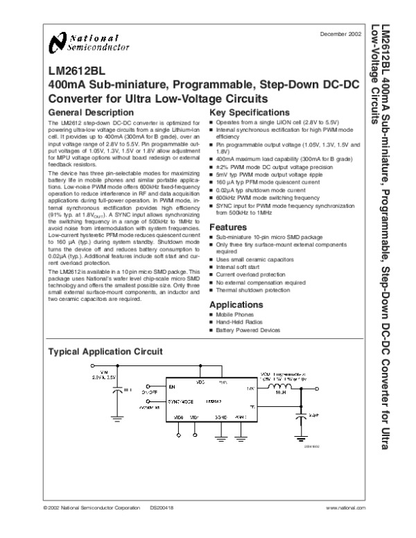Datasheet LM2612BL: