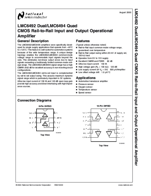 Просмотр технического описания на LMC6494