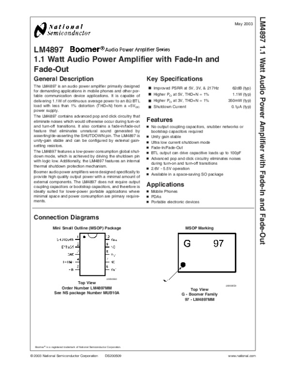 Datasheet LM4897:
