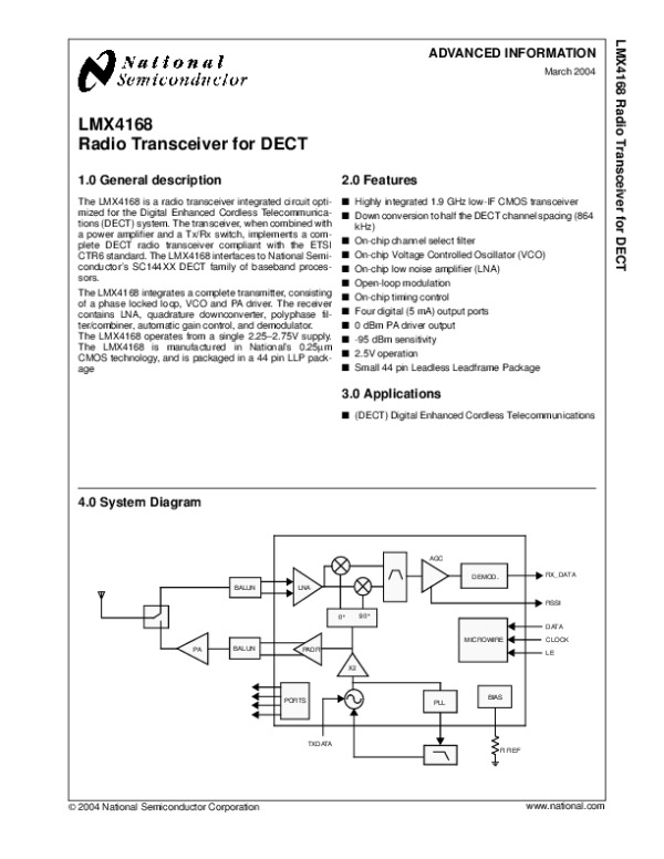 Datasheet LMX4168: