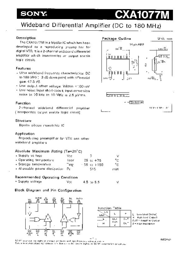 Datasheet CXA1077: