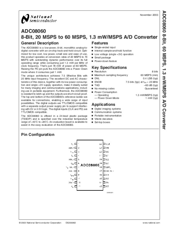 Просмотр технического описания на ADC08060