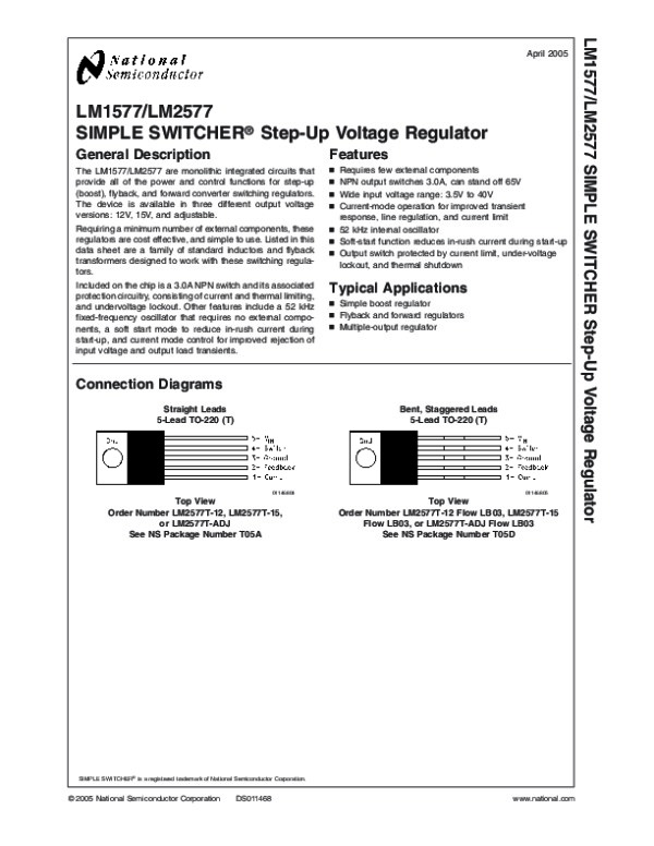 Datasheet LM2577: