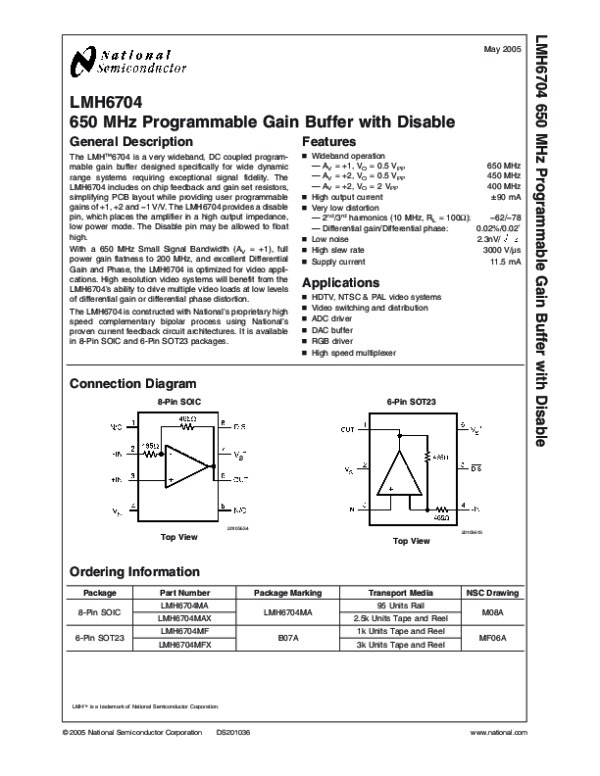 Просмотр технического описания на LMH6704