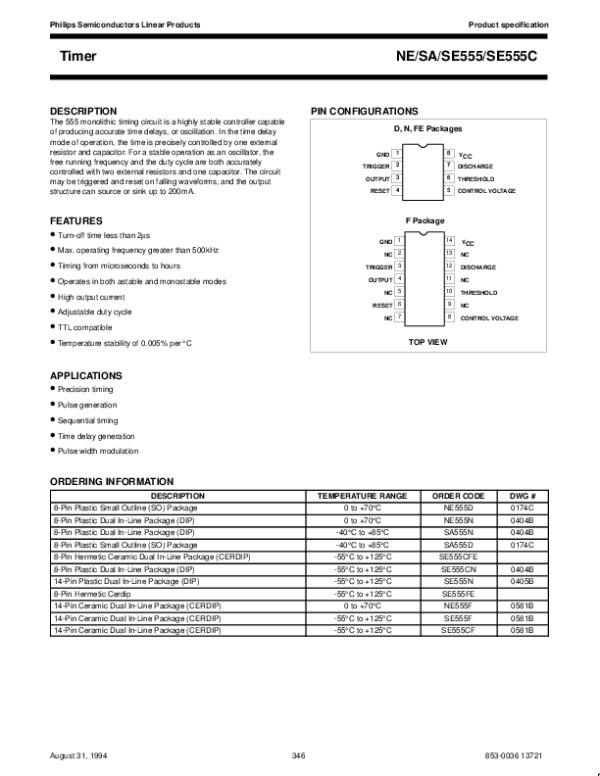 Просмотр технического описания на NE555