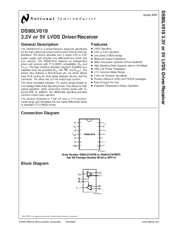 Datasheet DS90LV019: