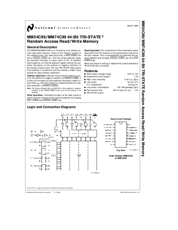 Datasheet MM54C89: