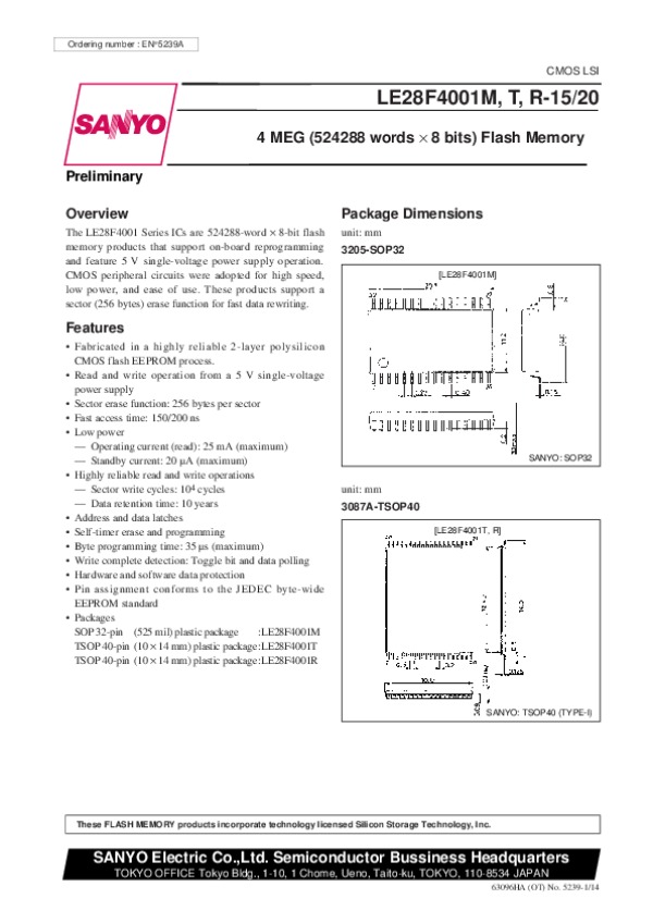 Datasheet LE28F4001M151:
