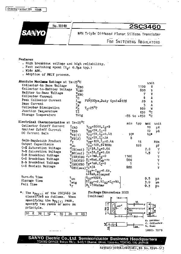 Datasheet 2SC3460: