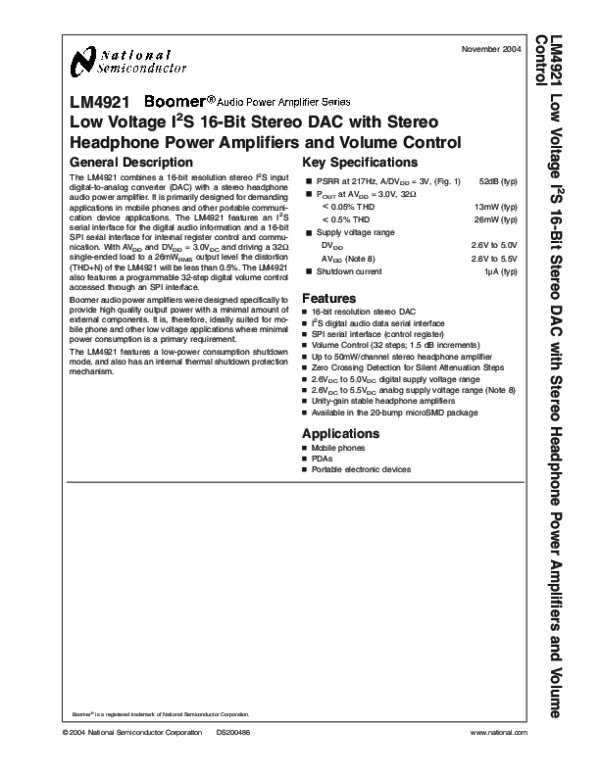 Datasheet LM4921:
