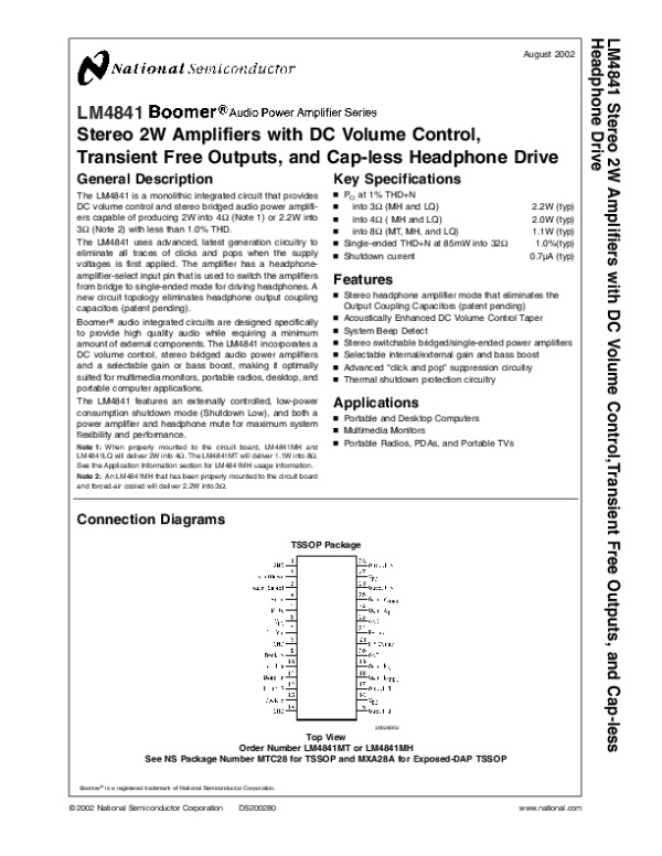 Просмотр технического описания на LM4841