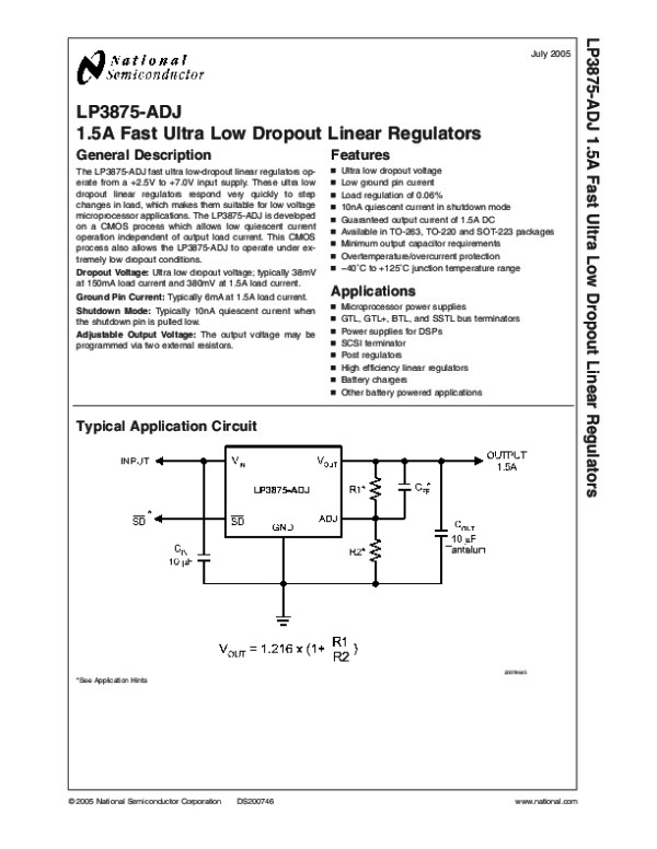 Просмотр технического описания на LP3875ADJ