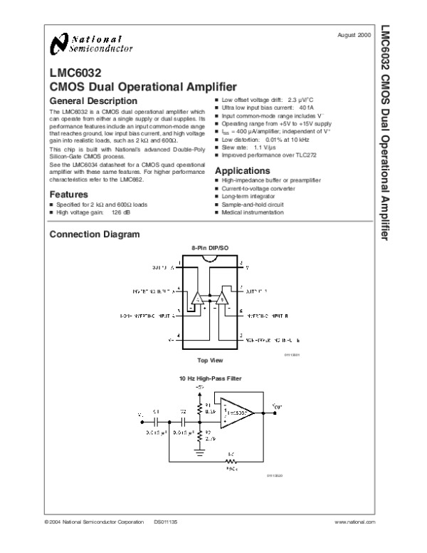 Просмотр технического описания на LMC6032