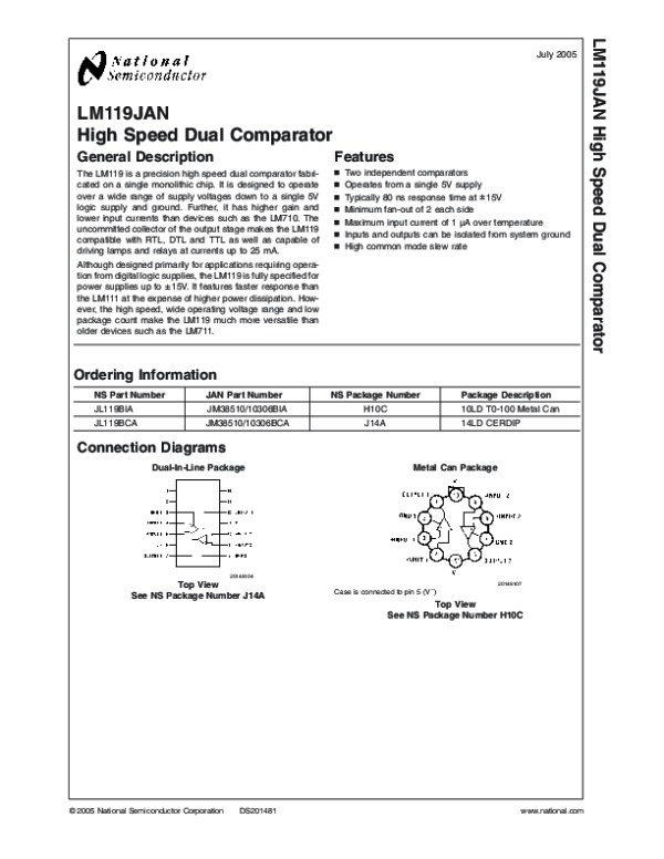 Datasheet LM119JAN: