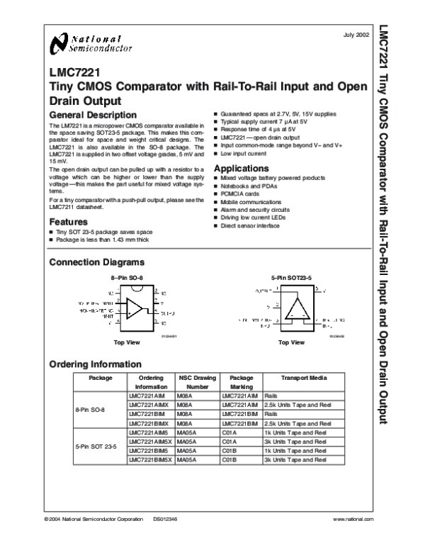 Datasheet LMC7221: