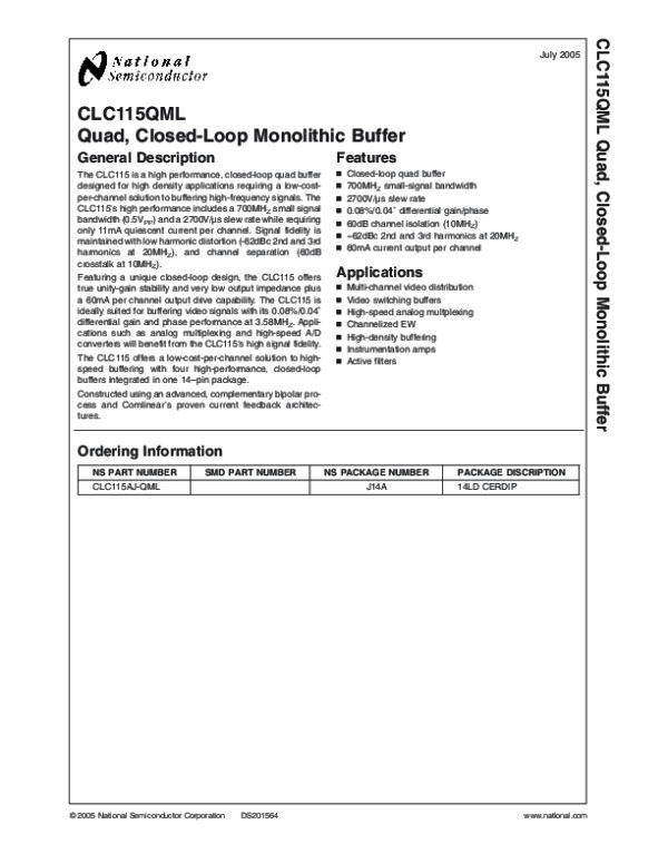 Datasheet CLC115QML: