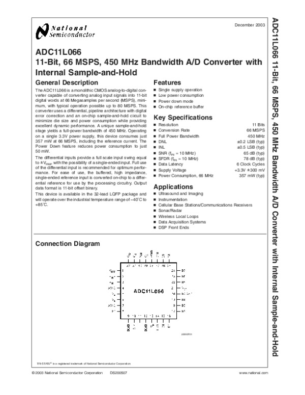 Просмотр технического описания на ADC11L066