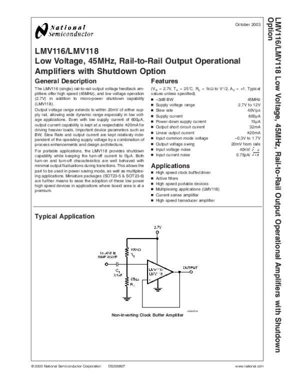 Datasheet LMV118: