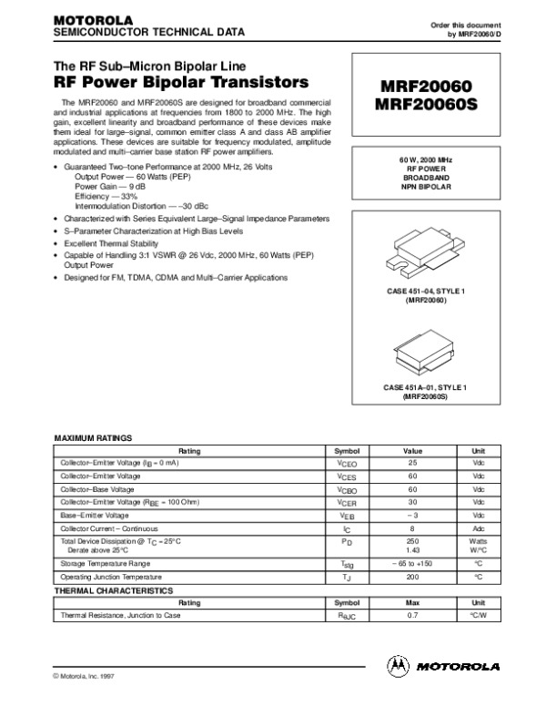 Datasheet MRF20060REV0M: