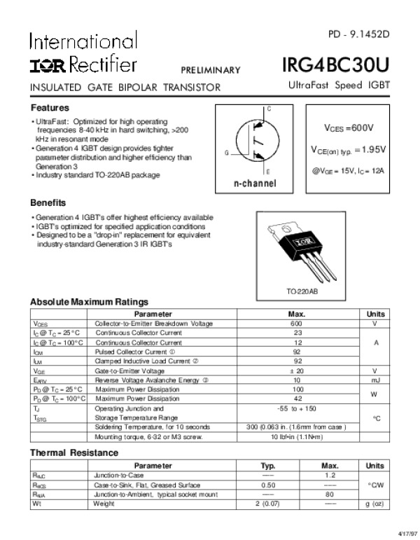 Просмотр технического описания на IRG4BC30U