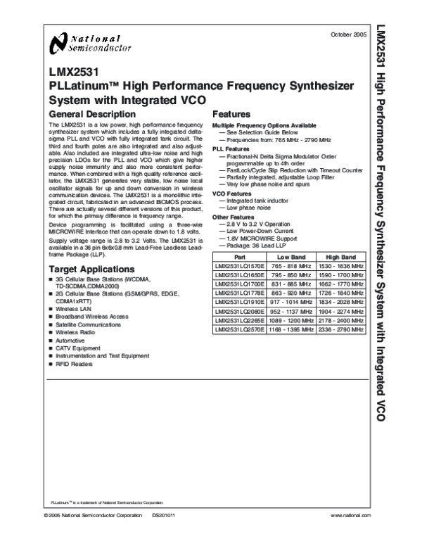 Datasheet LMX2531: