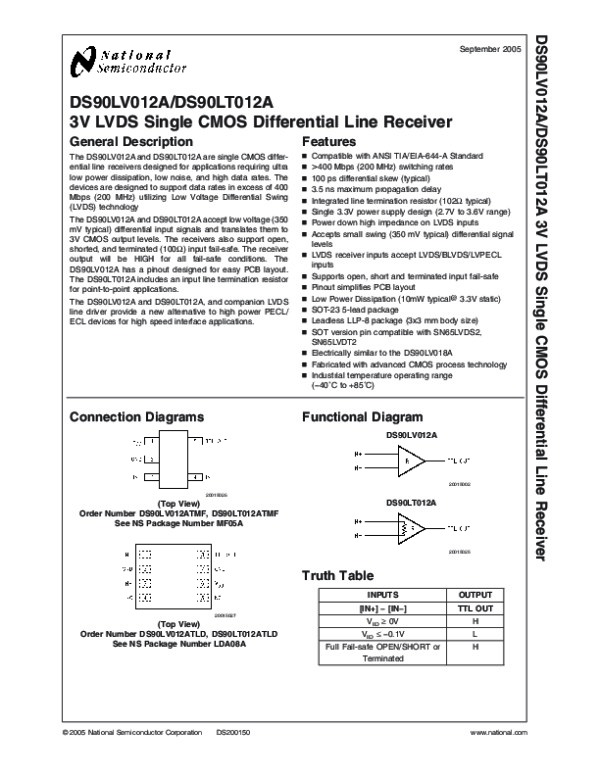 Datasheet DS90LT012A: