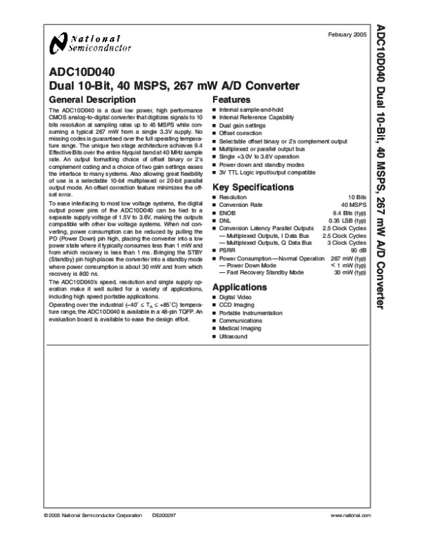 Просмотр технического описания на ADC10D040