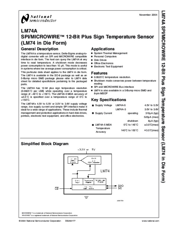 Datasheet LM74A: