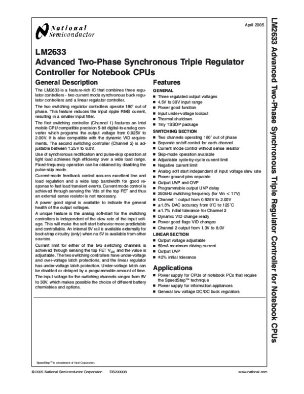Просмотр технического описания на LM2633