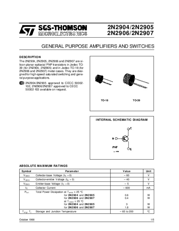 Datasheet 2N2906: