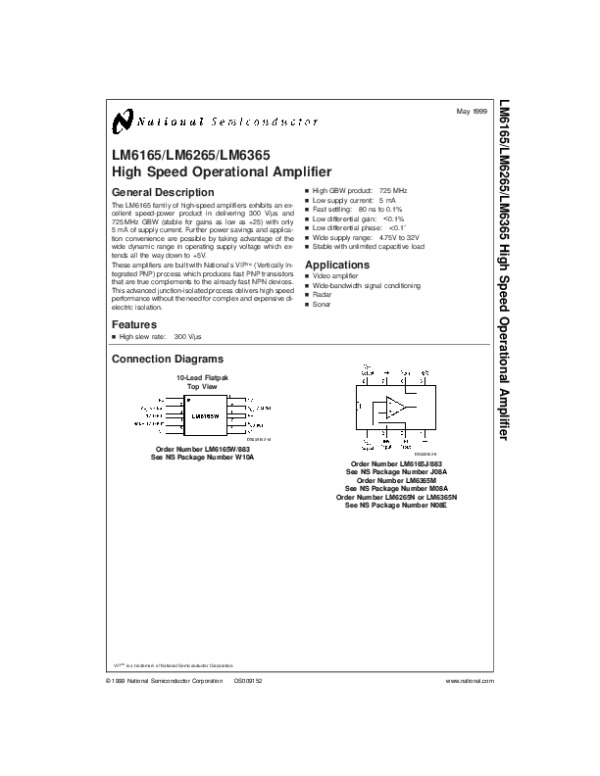 Datasheet LM6165: