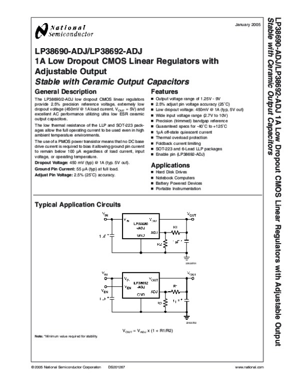 Datasheet LP38692ADJ: