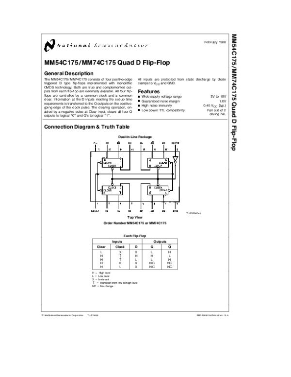 Просмотр технического описания на MM54C175
