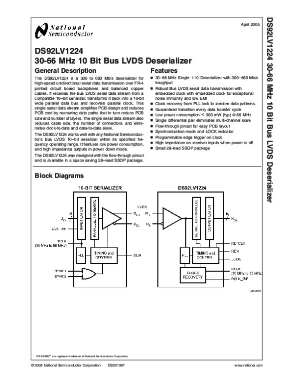Datasheet DS92LV1224: