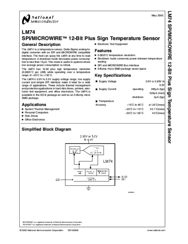 Datasheet LM74: