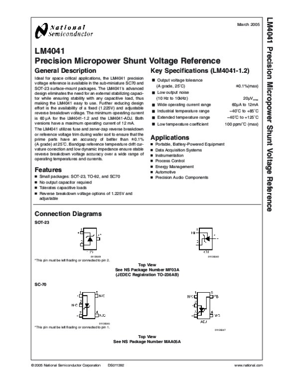 Datasheet LM4041: