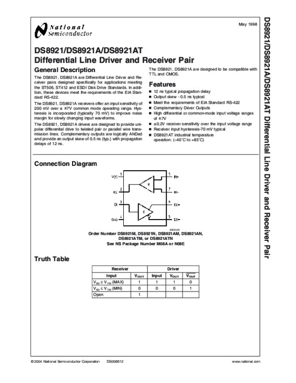 Datasheet DS8921AT: