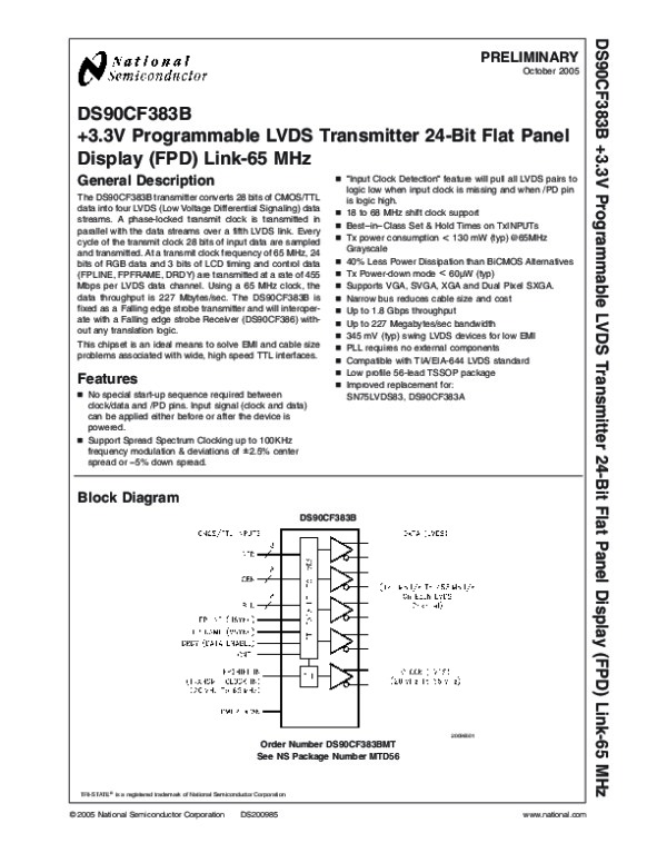 Datasheet DS90CF383B: