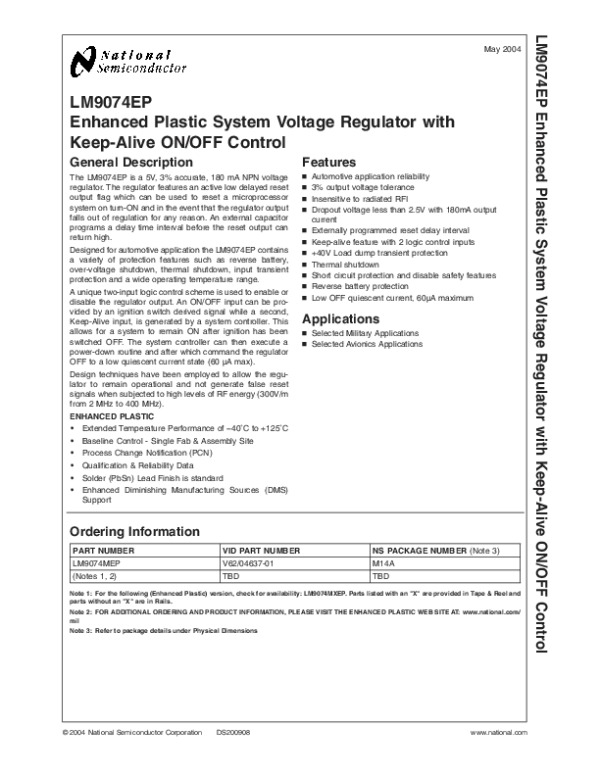 Datasheet LM9074EP: