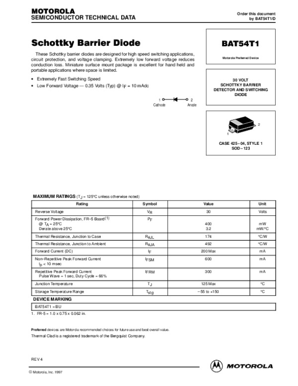 Datasheet BAT54T1: