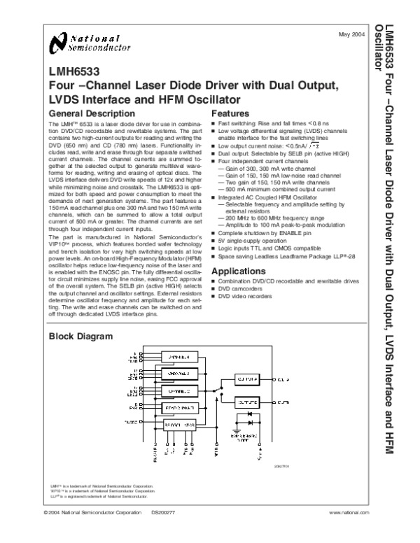 Просмотр технического описания на LMH6533