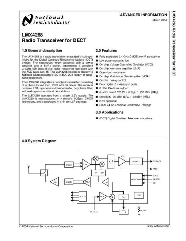 Datasheet LMX4268: