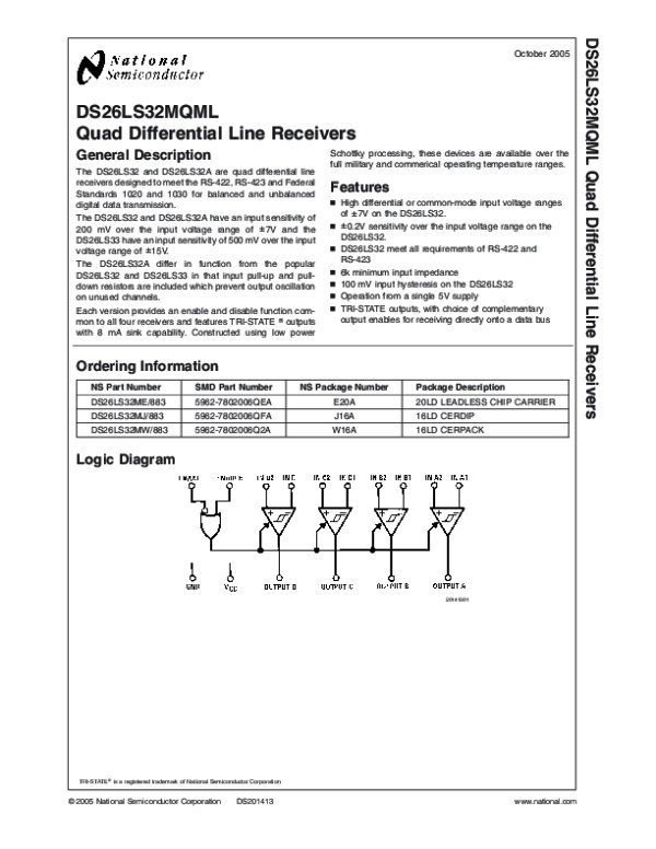Datasheet DS26LS32MQML: