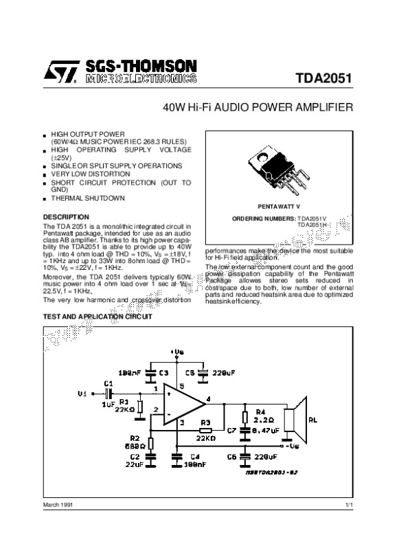 Datasheet TDA2051: