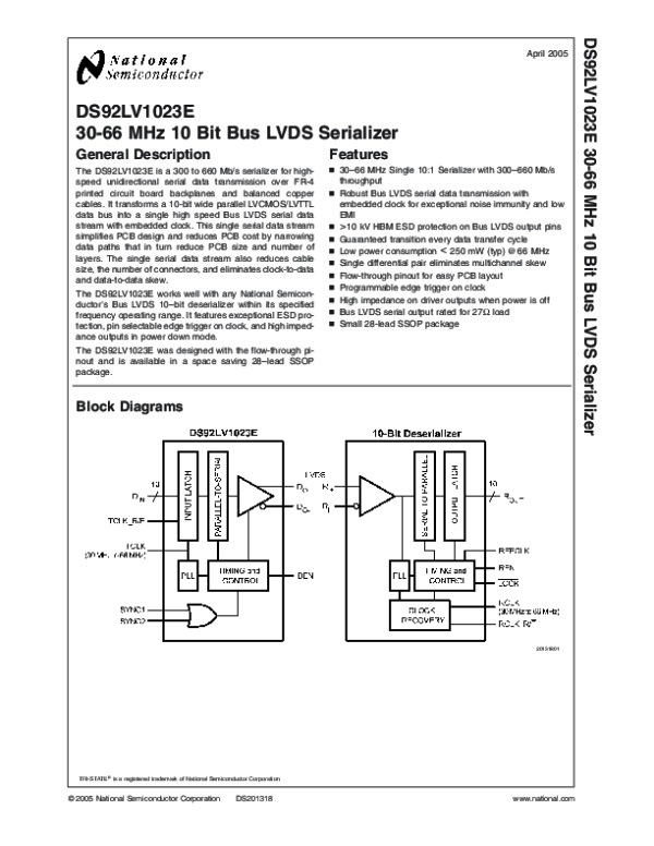 Datasheet DS92LV1023E: