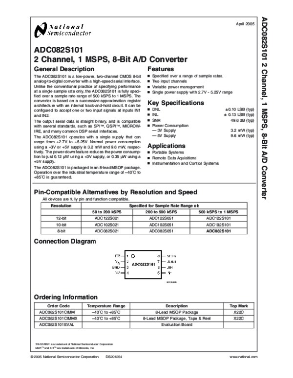 Datasheet ADC082S101: